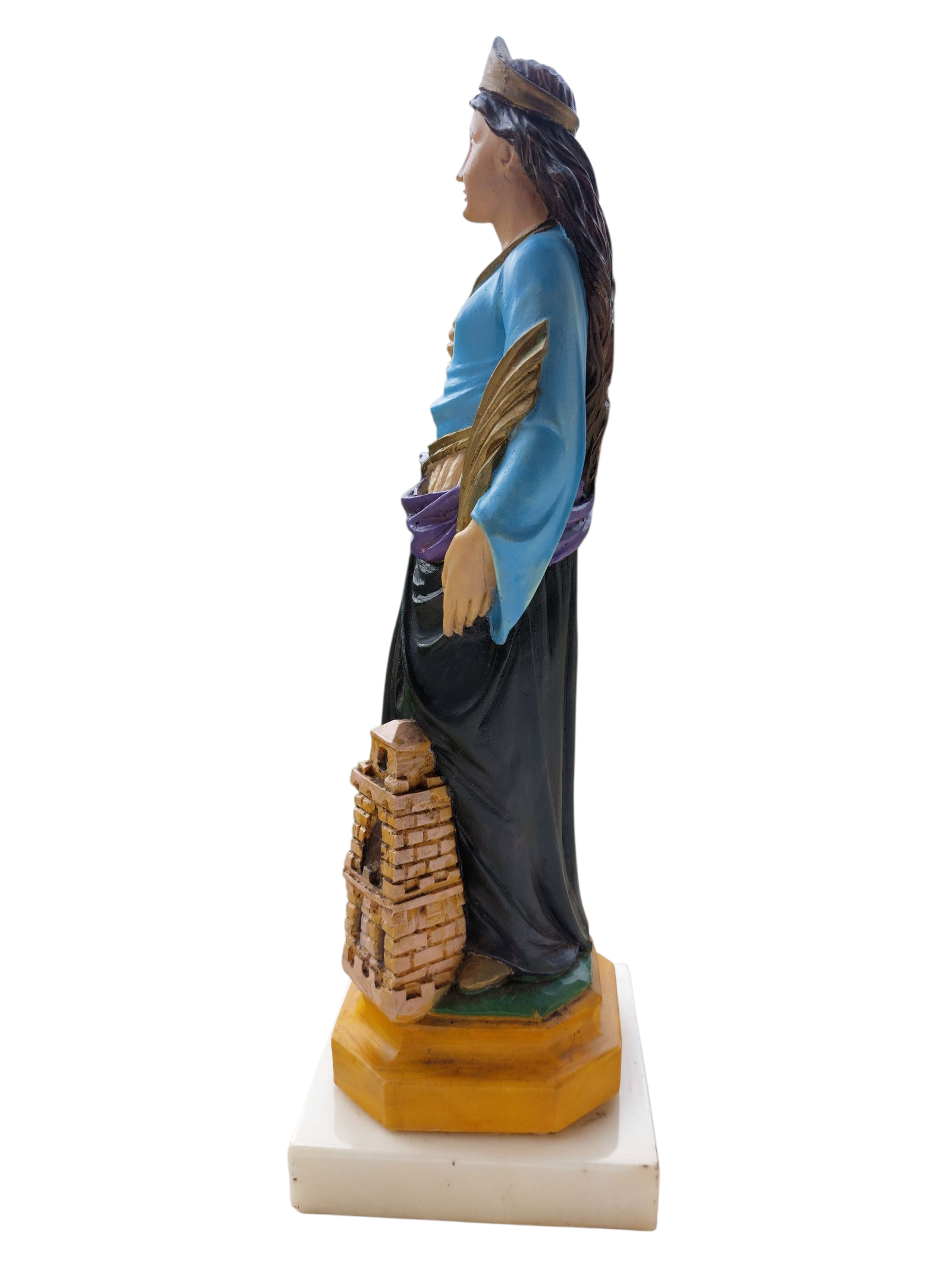 Statue religieuse ancienne de Sainte Barbe – Protection contre la foudre et la mort subite